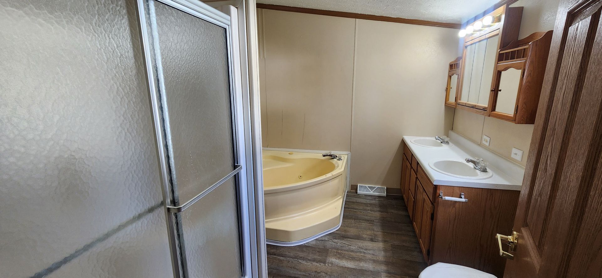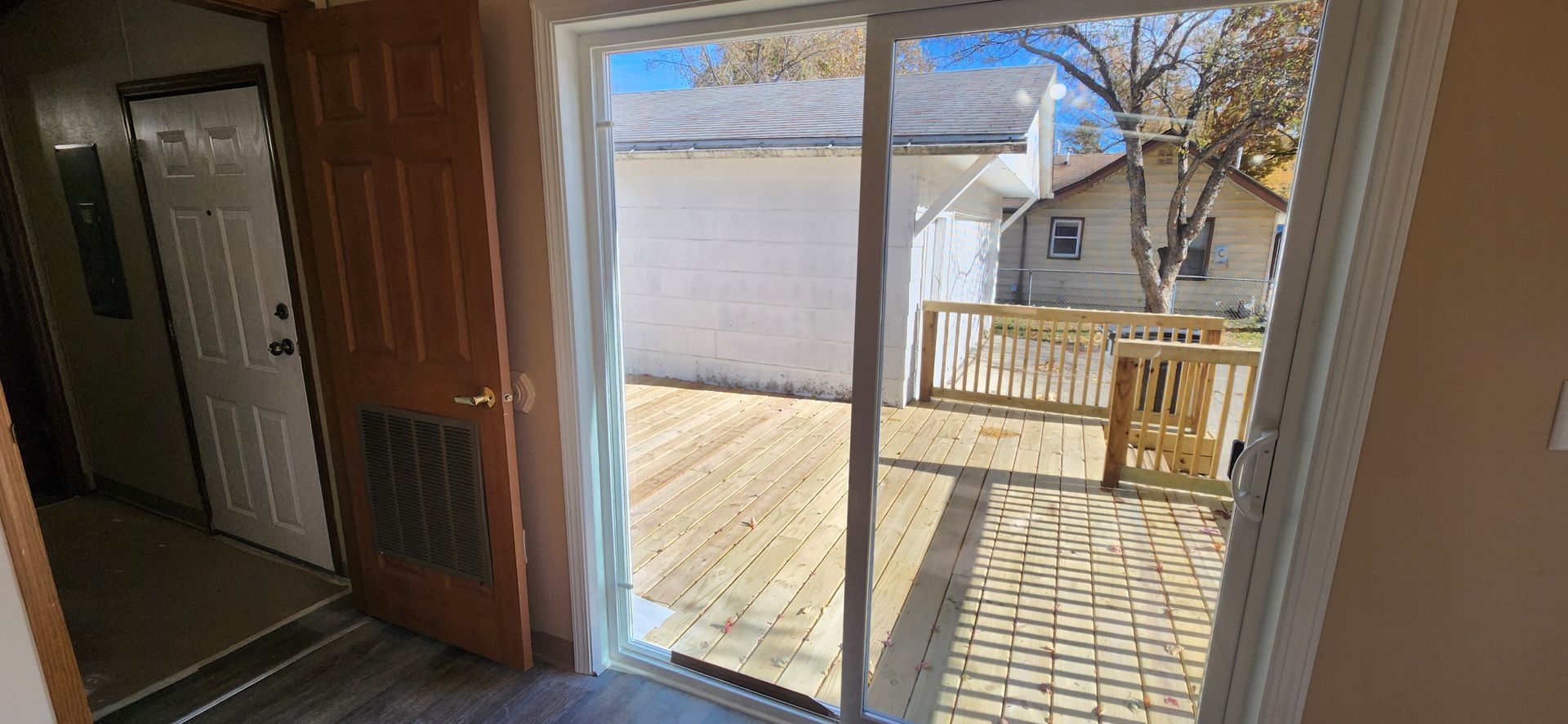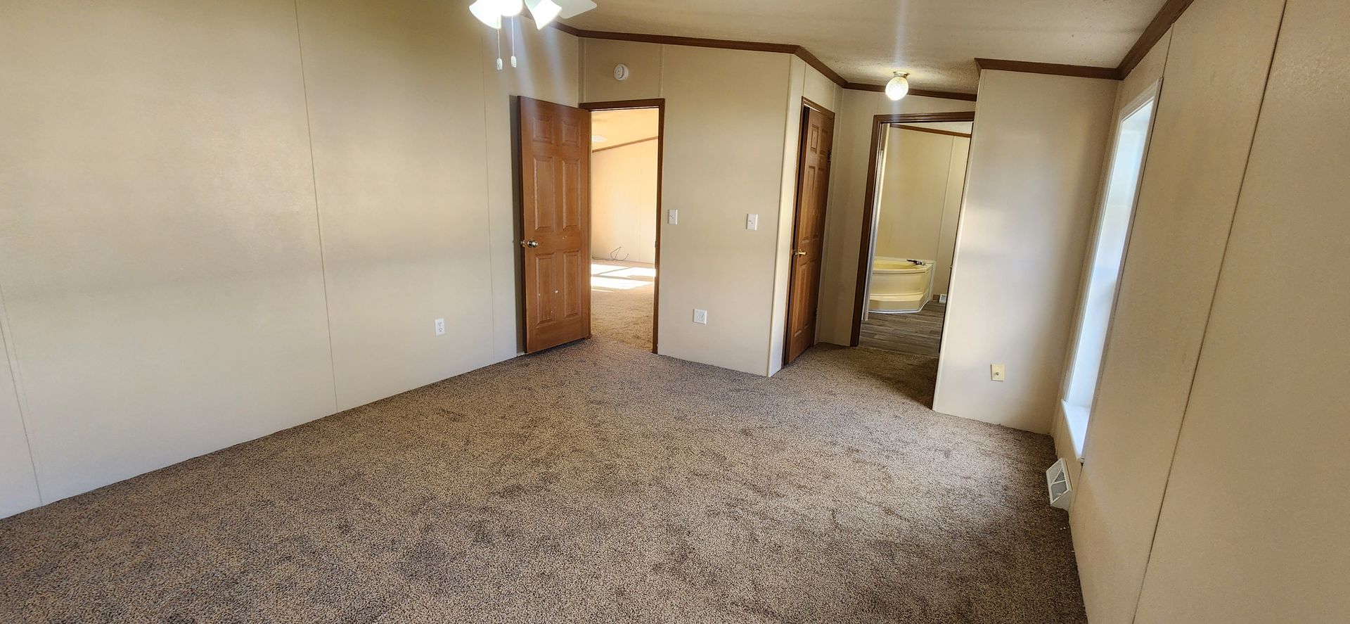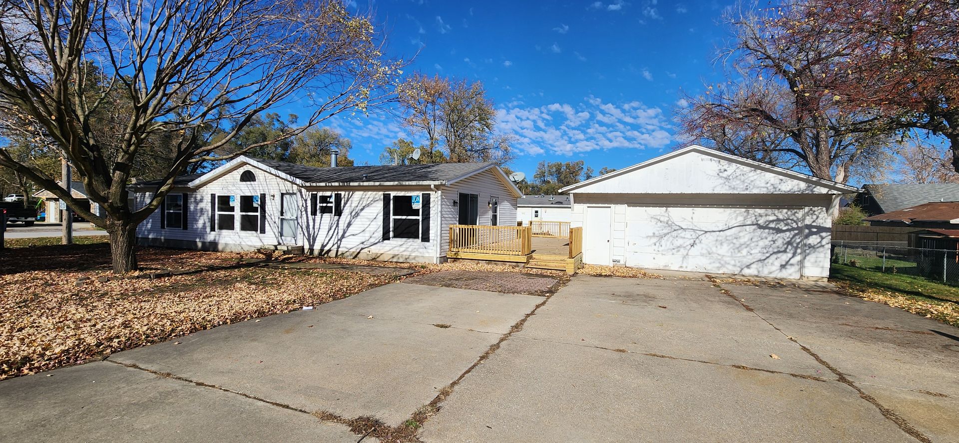 Don't miss this spacious home! New deck, windows, and sliding glass door were installed in the Summer of 2025 along with new flooring and fresh paint throughout. This home has a large master suite with full bath and soak tub, a full bathroom in the hallway near the other two bedrooms, and a half bathroom with laundry area at the rear entry of the home. The spacious eat-in kitchen has plenty of cabinet and counter space with a pantry closet as well. The deck joins the home and detached 2+ car garage and the driveway is very large, easy to turn around in!