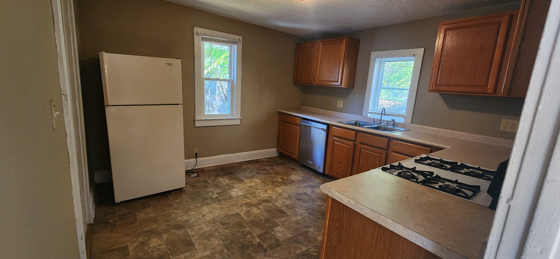 Yes, this home leases for just $995! Do not miss this deal. This home has many cosmetic imperfections (paint, flooring) but is an absolute gem of a find otherwise. The landlord is open to allowing a new resident to paint the walls with prior approval in writing. This home has a sunny front porch with living, dining, and kitchen areas on the main level. The main level also has a rear mudroom where you enter from the shared driveway and private, detached garage along with a half bath. On the upper level you will fine both bedrooms, a full bathroom, and laundry area.