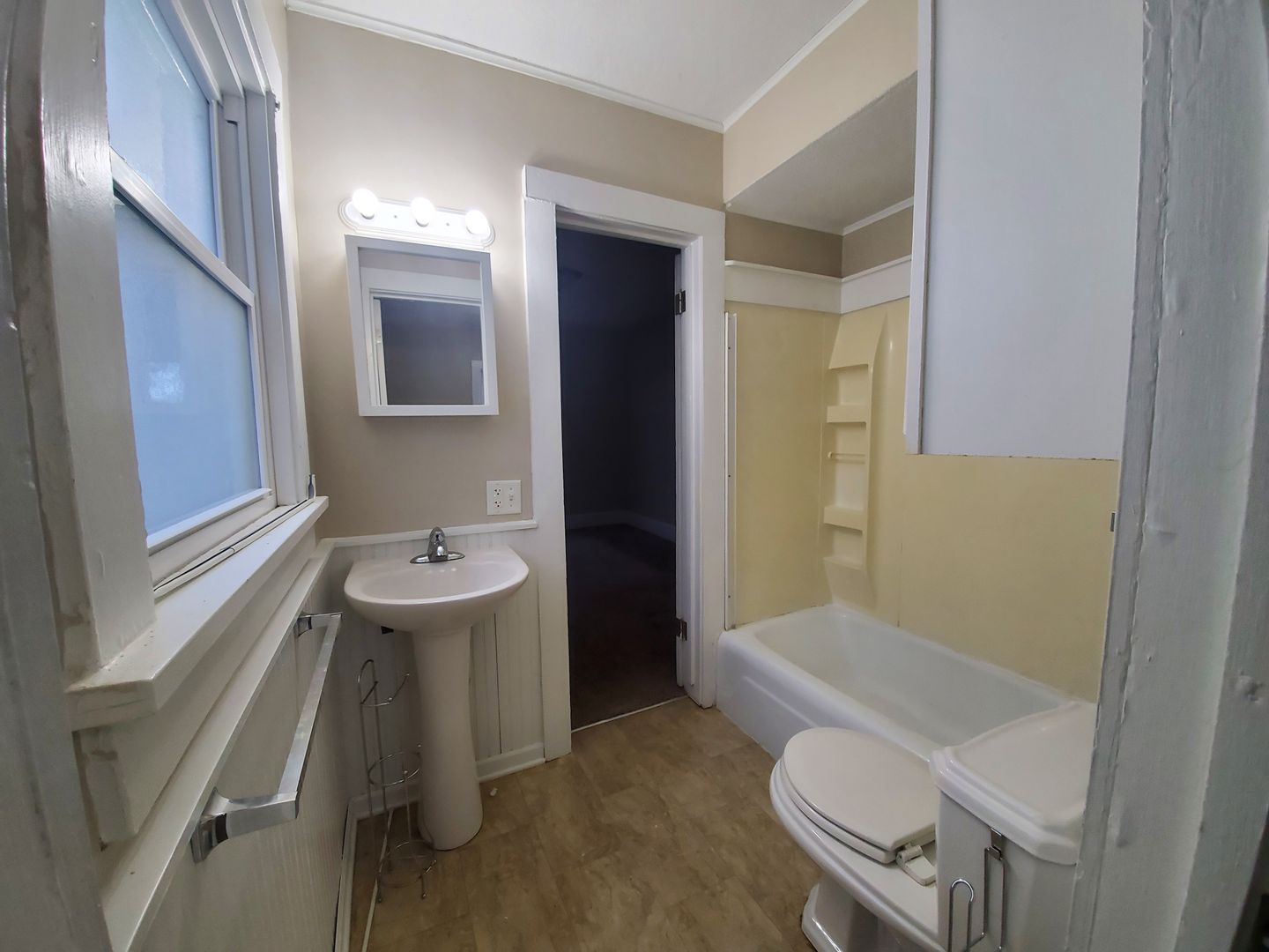 This two bedroom, one bathroom home has shared driveway leading to a one car detached garage with street parking also available. Kitchen appliances stay and there are washer and dryer hookups available in the unfinished basement. The large living room/dining room areas are very spacious and the two bedrooms are joined together by the shared bathroom between them. This home has a patio at the rear with a spacious back yard. The interior of this home is very charming and is a must-see!